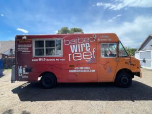 Food truck specializing in wild game and seafood, with a diverse menu that includes gourmet burgers made from Angus beef, elk, buffalo, wild game bratwursts featuring, rattlesnake, elk and alligator; and seafood options like blackened ahi tuna sandwiches and crab cakes . Their signature dishes, such as the Chipotle BBQ Pulled Wild Boar Sandwich and Piggy Fries topped with pulled wild boar and boar bacon.