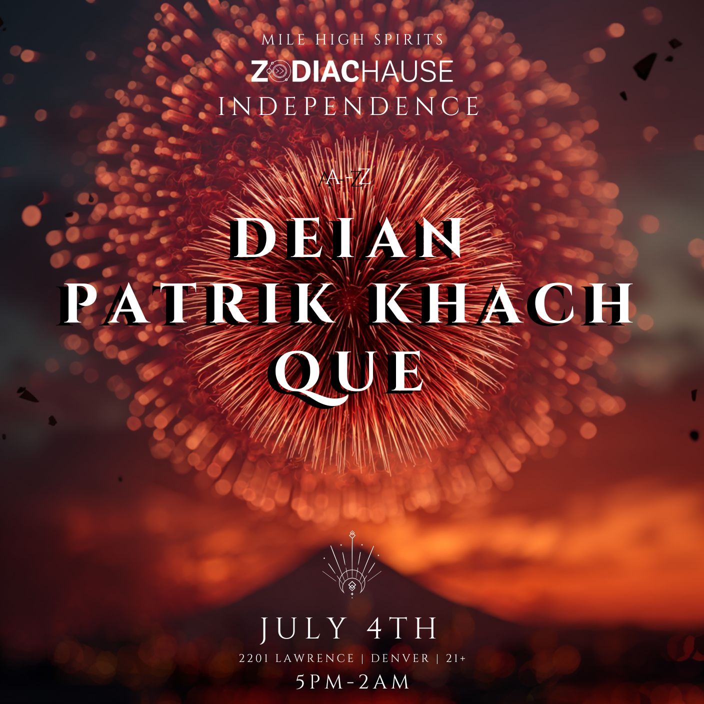 This Independence Day, Zodiac Hause invites you to a day-to-night celebration at Mile High Spirits – blending community, play, and music into an unforgettable experience. Headlining the celebration are two internationally respected touring artists, festival veterans, and ZH alumni: Patrik Khach and Deian – known for deep sets and powerful dance-floor connection.