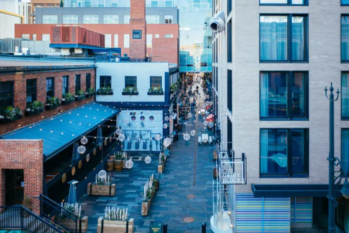 Dairy Block is a dynamic, walkable micro-district nestled in Denver’s historic Lower Downtown (LoDo), reimagining a 1918 brick warehouse that once housed Windsor Dairy into a vibrant urban hub. Today, it offers a rich array of experiences under one roof—including roughly 11 shops, 19 restaurants, and 8 bars; a stylish independent hotel called The Maven; and a modern coworking space operated by Venture X. The destination blends artisan dining (from full-service venues to a lively food hall, Denver Milk Market), curated retail both permanent and pop-up, local art installations throughout its alleyways, plus regular community events—like live music in its “Artist on the Rise” series and evening bazaars—making it a unique, creative cultural and gathering place in downtown Denver.
